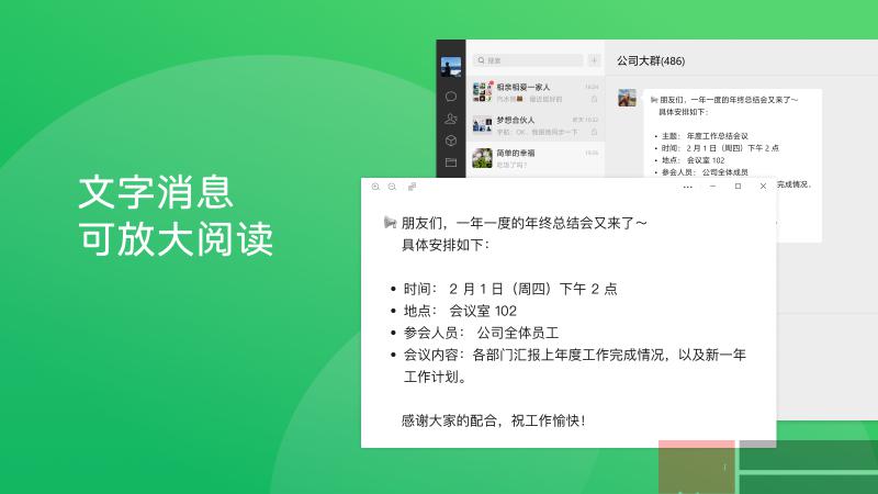操作便捷,沟通无阻:无论是快速发起单人或群聊,还是跨设备传输文件,都能一键完成,大幅提升沟通效率,满足日常办公与生活需求。