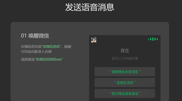 在微信首页说”发微信消息”,根据引导说出联系人名称,或直接说”发微信消息给xxx。