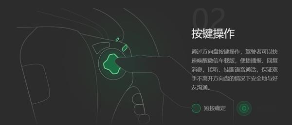 通讨方向盘按键操作,驾驶者可以快速唤醒微信,便捷播报、回复消息、接听、挂断语音通话,保证双手不离开方向盘的情况下安全地与好友沟通。