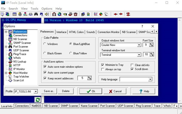 1、Local Info(本地信息) - 检查本地主机并显示关于本地计算机的信息,例如处理器、内存、Winsock数据、网络接口、IP(TCP,UDP,ICMP)统计信息、调制解调器、路由表等。
