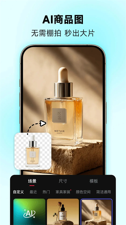 此外还有「AI商品图」「智能抠图」等多种AI功能,助力自媒体社媒营销引流!