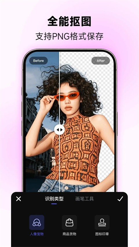 1、产品抠图:AI识别服装鞋帽、美容产品、食品饮料、家具五金、肖像宠物等100余种。