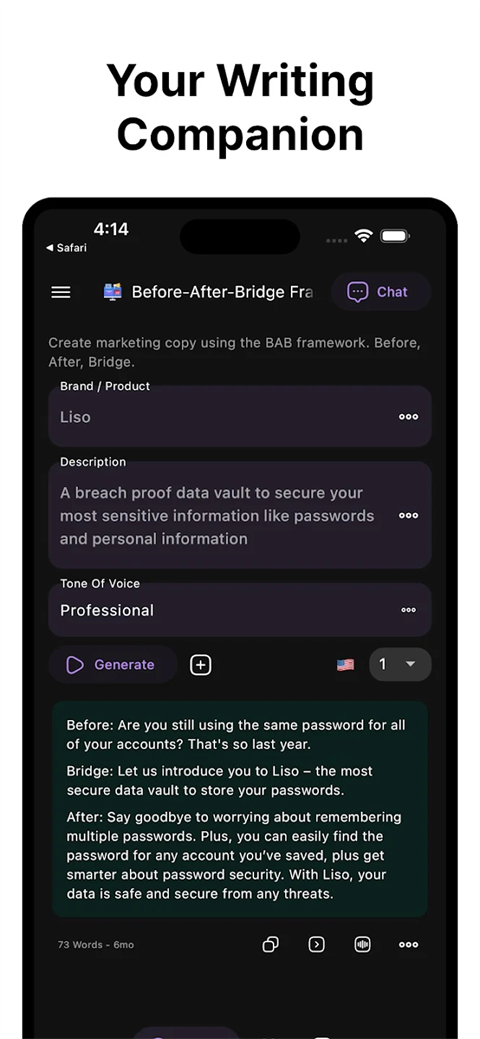 人工智能作家助手NexBot手机版是基于 GPT-3 的专业 AI 写作助手,适配 iOS/Android,为千万创作者打造。内置 70 + 模板,覆盖邮件、广告、博客、短视频脚本等全场景,支持 AIDA/PSA 等专业框架。可一键生成、续写、润色,支持 180 + 语言、关键词定制、原创内容保障NexBot。文档编辑、云端同步、历史记录齐全,是职场人、自媒体、运营的移动创作利器。