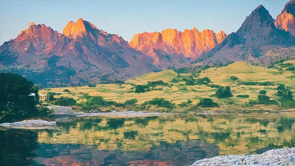 3、输入:日照金山,水面 倒影 草坪 虚幻引擎