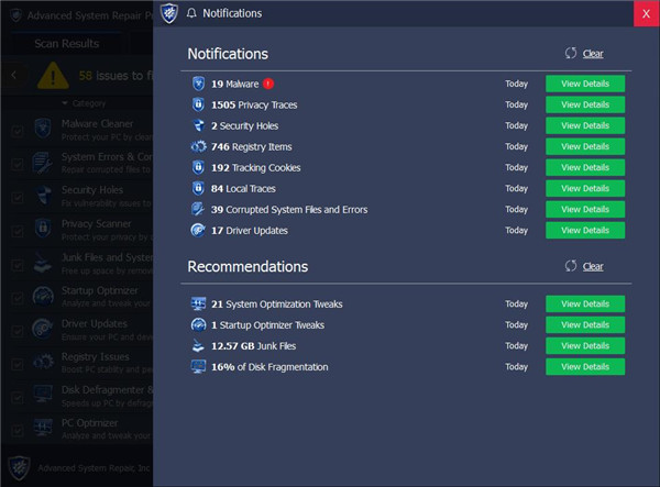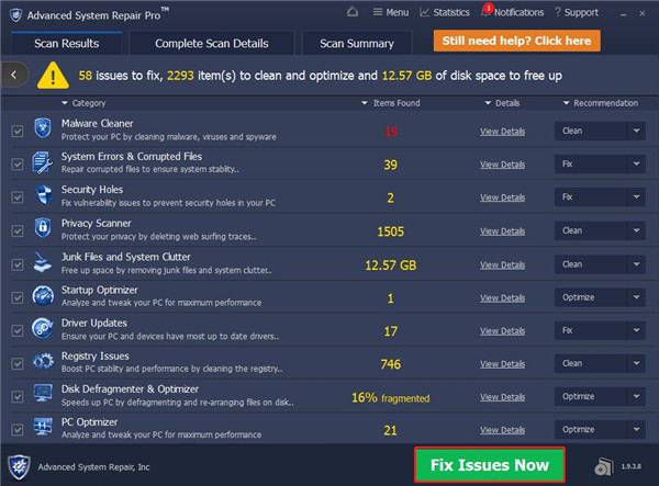Advanced System Repair Pro通过简单的一键式操作,高级系统修复功能可以通过在您的机器上组装碎片文件并更有效地组织它们来加速您的PC