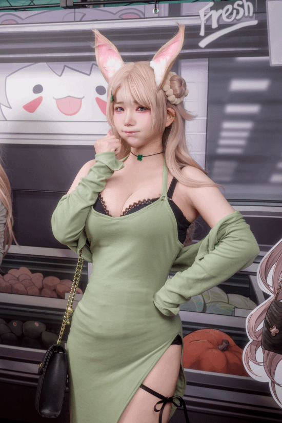 造型亮点: 兽耳配件与发型层次强化角色辨识度;面部高光与眼妆对比收敛,兼顾甜感与力量感。