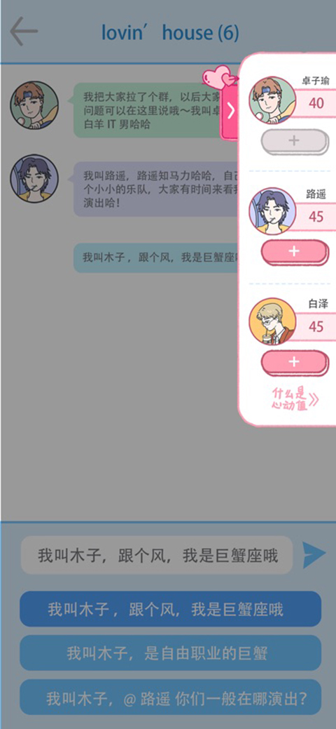 一起遛狗的某人也会有话说哦,细心选择回答会增加心跳值哦~也会影响狗狗的心情哦~