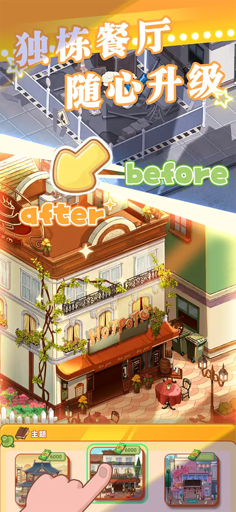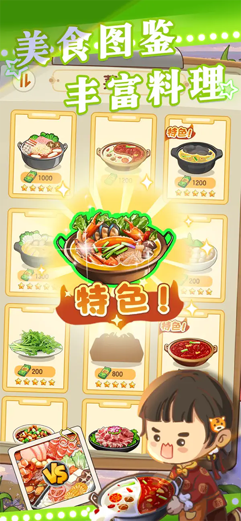 店铺装修、菜品制作、员工管理……还原真实的火锅店流程。丰富的店内设施及食材,多种多样的菜品和锅底,满足大江南北的各种食客。个性化的个人气泡与动作,提供更加沉浸的真实开店体验!