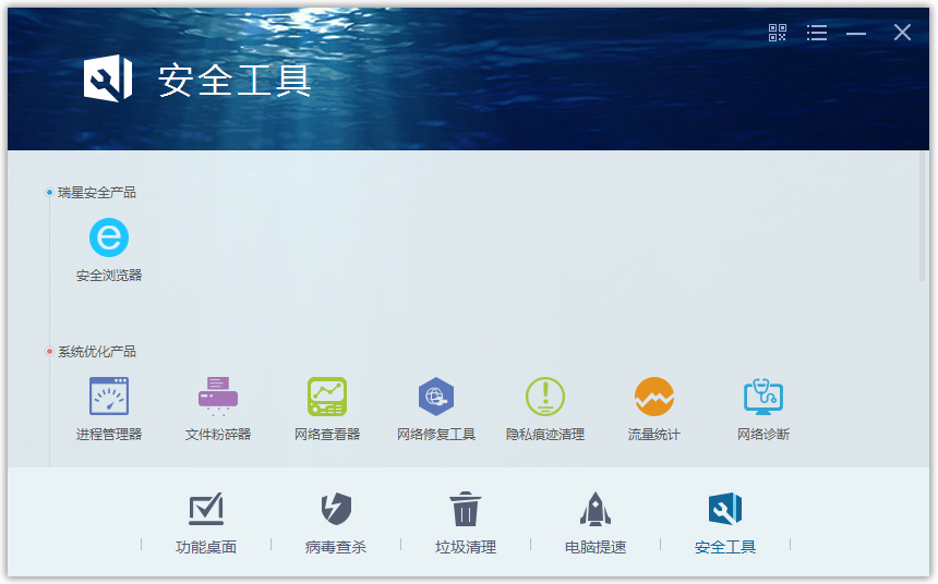 瑞星安全工具共四大类十四种实用工具。