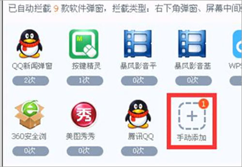 勾选全部,再点击确定,这里只会添加你自己电脑上已有的软件,这些软件都会弹窗的。手动添加有数字就是证明还有可以拦截的软件未添加;