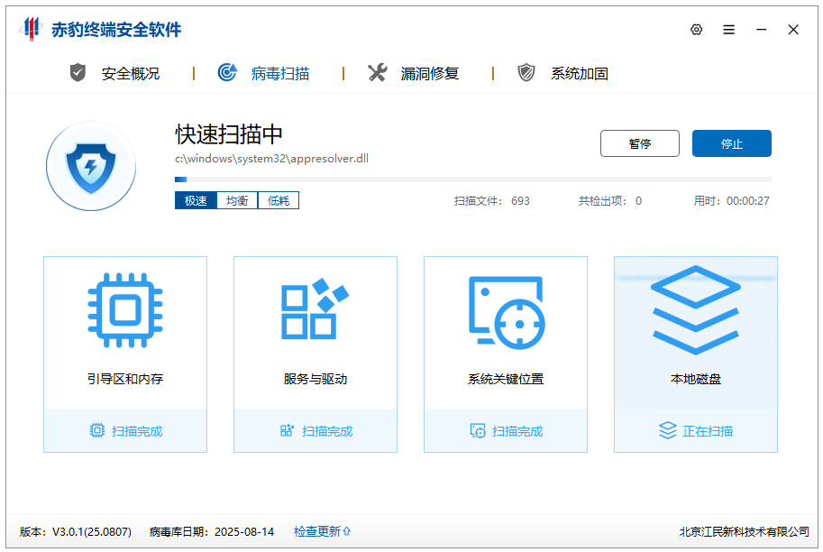 3、支持对电脑进行快速扫描,包括对引导区和肉存,服务与驱动,系统关键位置,本地磁盘;