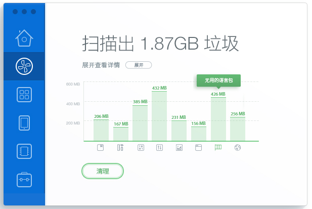 电脑管家为你提供包括日志&缓存文件、开发残留垃圾、无用二进制文件、无用语言包、损坏的配置项、iOS升级软件&照片缓存、应用程序残留文件、浏览器缓存8项垃圾文件。