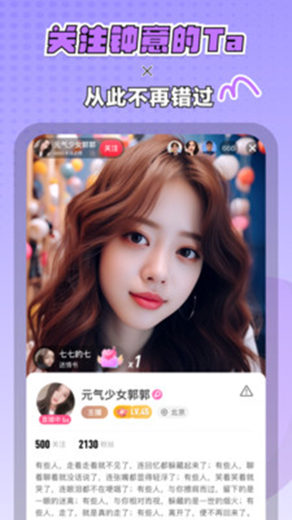 2、3d语聊:全新语聊形式,开启视觉与听觉的奇妙体验。炫酷3d形象与场景、360度旋转舞台、3d魔性礼物、震撼图片环绕屏。快来登上舞台展现你的才艺,一起开启派对吧~