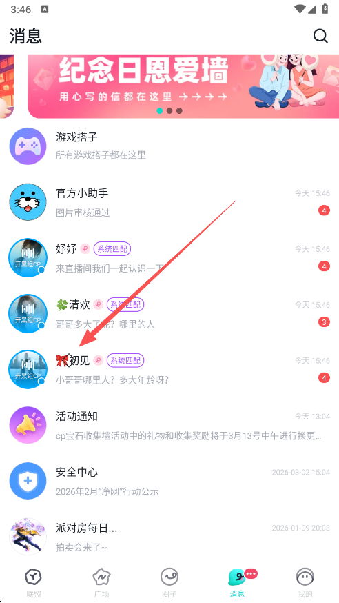 1、在本站下载安装app,进入消息页面,找打你要拉黑的对象;