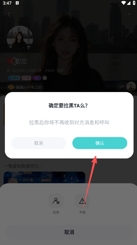 4、最后点击确认选项,即可拉黑聊天对象。