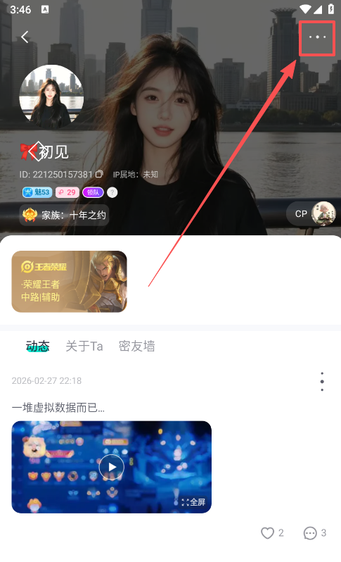 2、接着进入该好友的主页,点击右上方;
