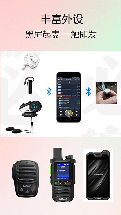 滔滔对讲与线控和蓝牙耳机完美兼容,让你的使用更加便捷。无论是开车、骑行还是其他户外活动,你只需要轻轻一按,就能进行语音通话,让你的双手始终保持自由。