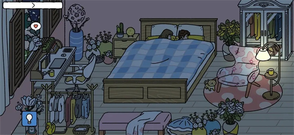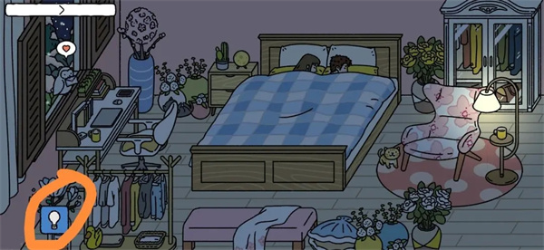 房间内熄灯后左下角出现一个灯泡标志,点击即可控制灯光开关。
