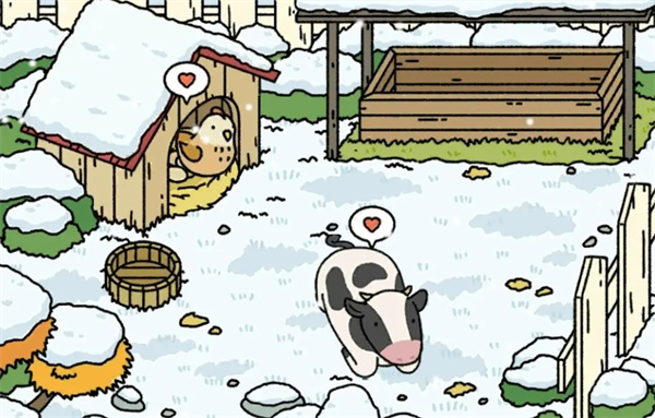 等家畜吃完饲料后,点击它们头上出现的小爱心就可以收获蛋奶了。