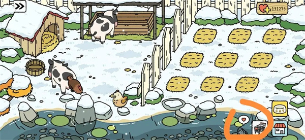 如图所示点击鸡和牛的食盆便可以给它们购买饲料;