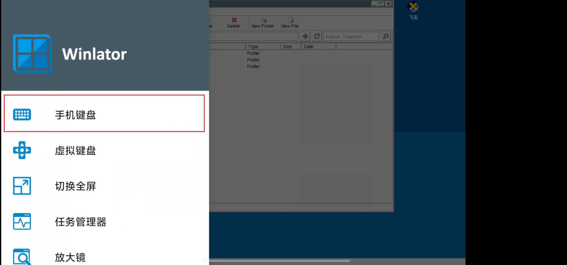 2、调出键盘:使用手机返回键/手势唤出菜单,再点击【手机键盘】即可使用输入法。
