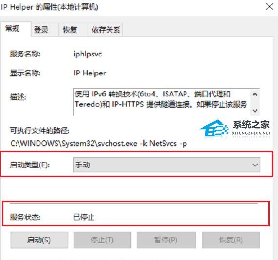 5、将“IP Helper”服务停止掉,启动类型改为手动,点击确定。