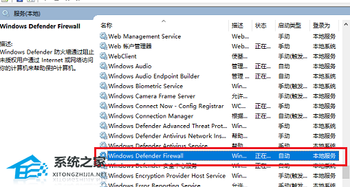 6、找到“Windows Defender Firewall”服务,启动类型设置为禁用,服务进行关闭,这样关闭了WMI的依赖组件,就可以CPU的使用了。