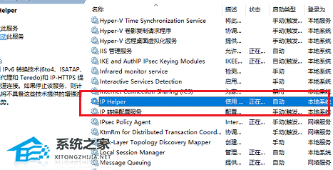 4、我们在系统服务列表中找到“IP Helper”服务,双击进去。