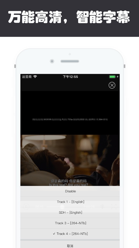 4、字幕手势,向前/后滑动移动到下一条/上一条字幕。上/下滑动使字幕上下移动。缩放改变字幕大小。