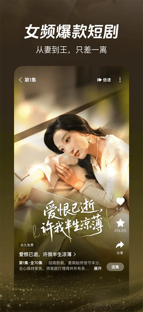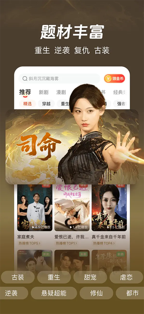 1、垂直内容生态:专注5-15分钟微短剧,覆盖甜宠、悬疑、重生等20+热门题材