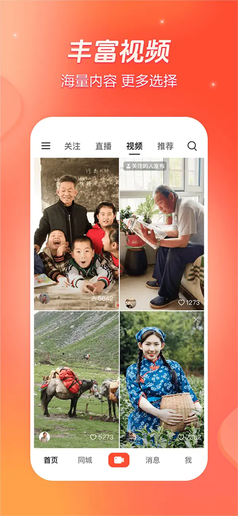这里有各种圏子达人-冲浪者、旅行家、建筑师..每个人在这里展示才艺、创意;发现你喜欢的人,发现喜你的人,让火山根据算法定制你专属的视频内容,新鲜永远刷不停