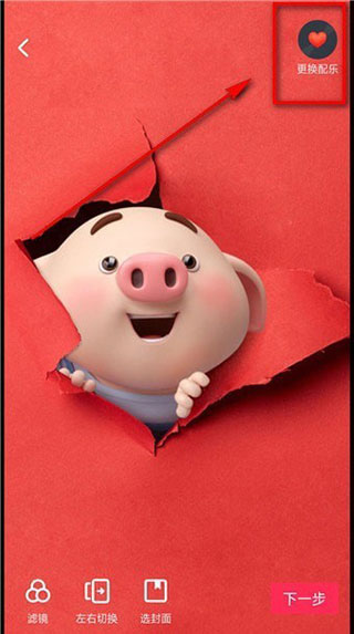 6、我们可以看到右上方就有一个更好配乐的图标,点击【更换配乐】;