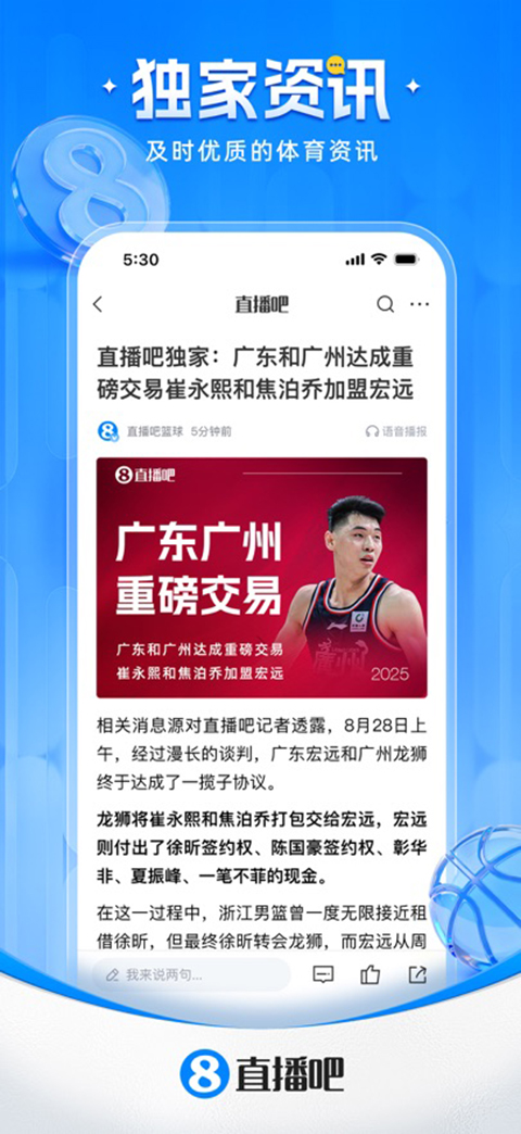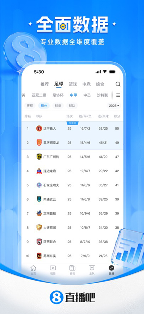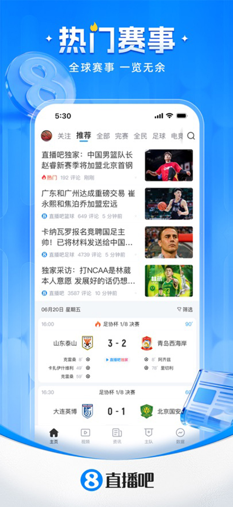 对于喜欢的球队,用户可以进行关注,最新的动态发布你可以实时了解。软件为广大用户提供最新、最全、最有趣的新闻,特有的体育新闻资讯中心,让你一手掌握,更有精彩集锦和赛事统计让你充分享受体育的魅力。软件支持实时更新目前比分,为用户带来最全的数据,一目了然,非常简便。球迷朋友们可以在直播吧社区进行交流、互动、评论,找到你的组织,一起来说球吧。
