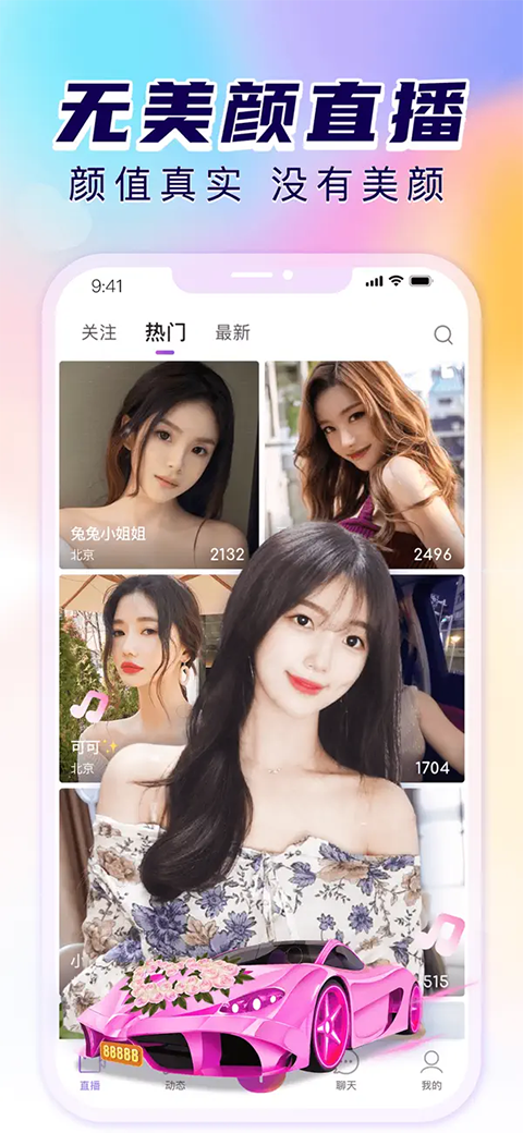软件支持智能美颜功能,让你的容貌变得更加有魅力,视频直播画面清晰流畅,专享超高码率播放;