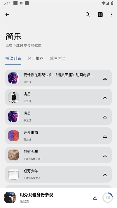 1、简乐支持创建和管理歌单,整理喜欢的歌曲至不同歌单,方便收藏和随时播放